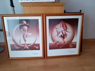 Conjunto de dos cuadros vintage con un diseño abstracto, uno de los marcos tiene un golpe, se puede reparar, medidas 55 x 65, no se envía - Marco de madera. - Motivos en tonos marrones y rosados.