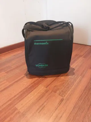Bolsa de transporte para Thermomix. - Color negro. - Logo de Thermomix y Vorwerk en verde.