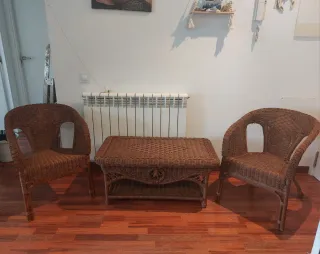 Conjunto Mimbre 2 Sillones y Mesa Centro
