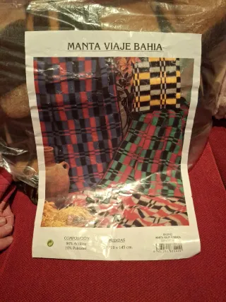 Manta de Viaje Bahía Composición 90% acrílico y 10% poliester Medidas 110×145 cm Manta de viaje ideal para llevar en el coche, para camping, picnic o uso en el hogar. Nueva, sin usar, se hacen packs y envios por wallapop o entrega en mano en Artés.