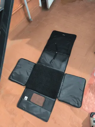 Transportín plegable para coche, ideal para el transporte de mascotas. Fabricado en material textil resistente. - Cierre con hebillas. - Correa ajustable. - Dos bolsillos frontales.