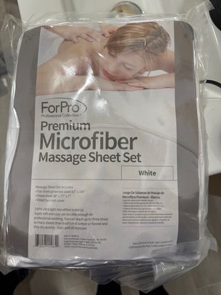 Juego de sábanas de masaje de microfibra de alta calidad. - Sábana lisa: 63 x 100 - Sábana ajustable: 36 x 77 x 7 - Funda para reposacabezas - Material ligero, suave y acogedor. - Resistente a lavados profesionales. - Secado rápido y resistente a manchas y aceite.