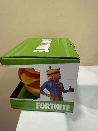 Taza temática de Fortnite con un diseño llamativo. - Personaje Peely con su icónica hamburguesa. - Colores vivos y detalles del juego.