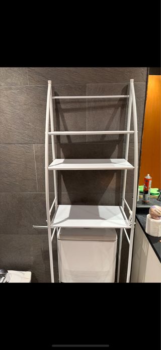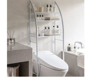 organizador de baño de 3 estantes de la marca Fit Right, diseñado para colocarse sobre el inodoro y maximizar el espacio de almacenamiento.