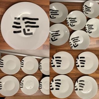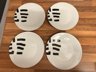 Vajilla compuesta de 17 piezas de diseño exclusivo de Eduardo Chillida con sello de Museo Chillida-Leku en la base de cada pieza. Platos grandes en comparación con las vajillas comunes Para amantes del arte y diseño, inspirada en uno de los escultores más reconocidos del Pais Vasco (Peine del Viento). ✔️ 6 platos llanos – 27 cm de diámetro ✔️ 6 platos hondos – 23 cm de diámetro ✔️ 4 platos de postre – 20 cm de diámetro ✔️ 1 plato llano grande centro/servir – 30 cm de diámetro Muy cuidada. Pequeñas señales de uso en algunas piezas pero sin afectar demasiado a su estética ni funcionalidad.