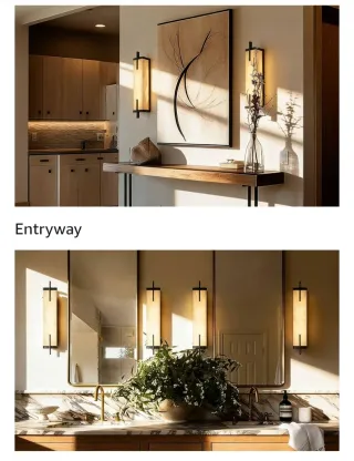 Elegante aplique de pared con un diseño moderno y sofisticado. Combina la belleza natural del mármol con detalles metálicos en negro y latón para un acabado lujoso. - Diseño lineal y cuadrado. - Iluminación integrada. Son 2 En su caja