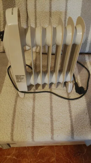 Radiador eléctrico Saivod de tamaño compacto. Ideal para calentar espacios pequeños. Vale para habitación pequeña o para baño. - Control de temperatura con dial. - Indicador luminoso de encendido.
