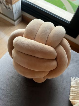 Este cojín decorativo tiene un diseño trenzado único. - Forma de nudo. - Color blanco.
