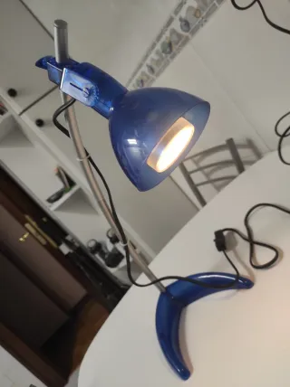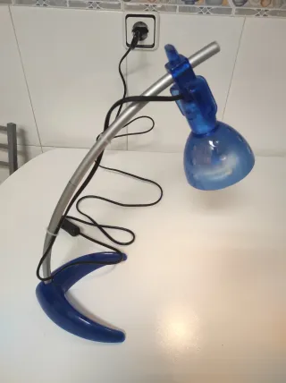 Lámpara de escritorio azul y plateada