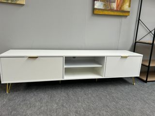 Mueble TV bajo blanco con patas doradas