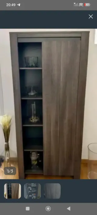 Mueble de librería y estantería con un diseño moderno en color ceniza. Ideal para complementar tu comedor o salón. 7 Baldas totales, puerta sólo en lado derecho. NO NEGOCIABLE Medidas: 180cm altura, 80cm ancho, 34cm fondo. - Combinación de colores marrón y gris. Fabricante Conforama. Desmontado, listo para llevar, coge en un coche