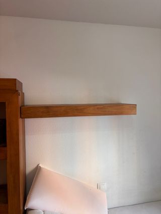 Se vende estantería de pared de madera de pino, ideal para cualquier habitación. Se encuentra en buen estado. - Perfecta para organizar libros, objetos decorativos, etc. - Dos baldas amplias y resistentes. - Diseño sencillo y elegante.