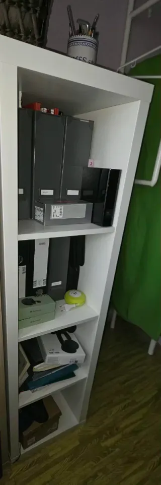 Oficina / Despacho completo Armario con tres baldas y dos archivadores de carpetas extraibles 90/42/185 (como nuevo) Armario con 5 baldas 90/42/185 (tiene un lateral con un recorte, que no se aprecia si están unidos o pegado a una pared) Cajonera con ruedas 55/41/56 (como nueva) Mesa de escritorio a juego 96/67/72 (como nueva, está desmontada, no está en la foto) Ver componentes sueltos en mi perfil.