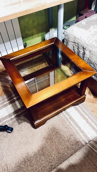 Mesa auxiliar madera y cristal