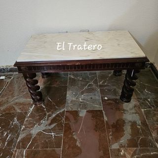 MESA CENTRO RECTANGULAR Mesa centro rectangular , Madera maciza barnizada en color nogal , Patas torneadas , Tapa de marmol , Se encuentra en Mérida , Tenemos posibilidad de transporte no incluido en el precio, consultar precio segun localidad, medidas ; ANCHO ◇ 86 ALTO ◇ 44 FONDO ◇ 46 PRECIO 40 € #segundamanoeltrastero