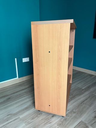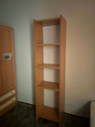 Preciosa estantería de melamina de alta calidad. Color haya. Ideal para cualquier habitación. - Cinco baldas amplias y resistentes. - Perfecto estado de conservación. - Si interesado preguntar por armario curvado y elegante. Y conjunto modular adicional, estanterías y armario central, y escritorio con cajonera. (Si conjunto precio negociable). Medidas: Alt. 240cm- Ancho 51 cm-Fondo 31cm.