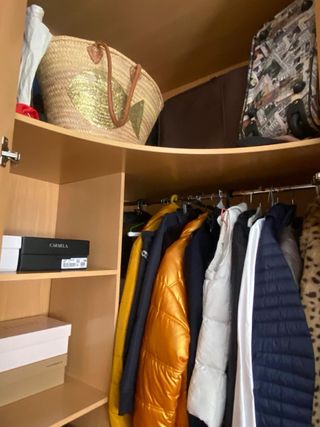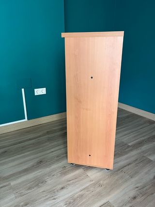 Armario ropero de madera en buen estado. - Perfecto para organizar la ropa. - Dispone de barra para colgar prendas. - Incluye baldas para almacenar ropa doblada.