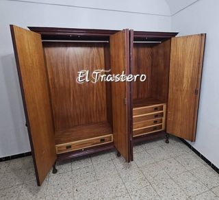ARMARIO MATRIMONIO CLASICO Armario matrimonio clasico cuatro puertas , Barnizado en color nogal rustico , Cinco cajones , baldas y barras de colgar , Se encuentra en Mérida , Tenemos posibilidad de transporte y montaje no incluido en el precio , Pregutar precio según localidad, medidas ; ANCHO ◇ 204 ALTO ◇ 190 FONDO ◇ 60 PRECIO 180 € #segundamanoeltrastero