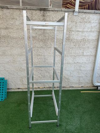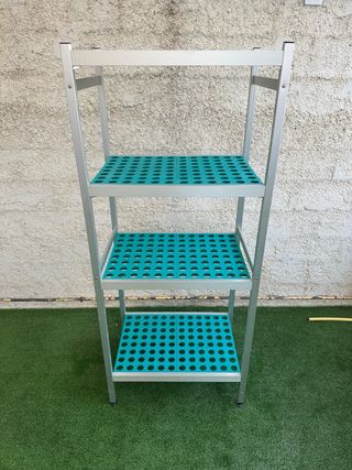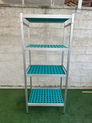 Estantería de aluminio profesional para uso en hosteleria, con homologacion para la industria alimentaria, en perfecto estado. Valieonpara uso en camaras frigorificas, ideal para restaurante,hospitales,etc - Estructura robusta y ligera. - Cuatro baldas amplias. - Fácil montaje y desmontaje. - Color plata. - Uso Profesional