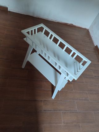 Mesa auxiliar de madera blanca, ideal para cualquier estancia. Es perfecta para colocar plantas o como mesita auxiliar. - Tiene una balda inferior para almacenamiento. - Diseño sencillo y elegante. - Estructura resistente.