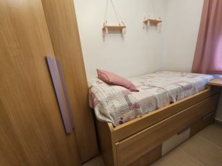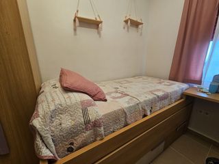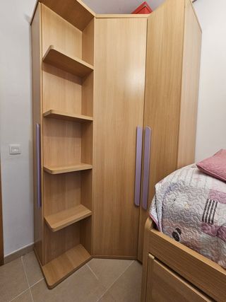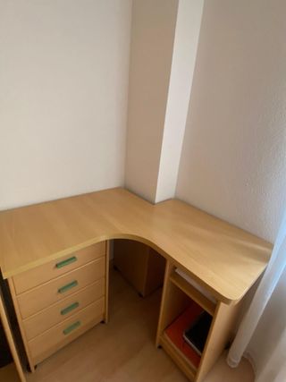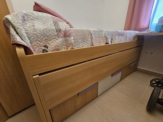 Conjunto de muebles para habitación. - Cama nido con cajones. - Mueble esquinero. - Balda de escritorio. Se vende por cambio de uso de la habitación, si bien presenta un estado bastante bueno. Precio no negociable. Venta en persona.