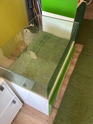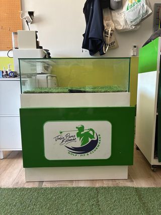 Mostrador para negocio, en dos piezas. Está en buenas condiciones. - Ideal para tiendas que necesiten zona de muestras en el mostrador de atención al público - Contiene una vitrina de cristal. - Diseño moderno y atractivo. son dos módulos (los que tienen vitrina de cristal) de 93 cmdr alto, 83 cm de largo y 54 cmde profundidad. Como se ve en las fotos, uno tiene cajoneras y el otro baldas no se venden por separado