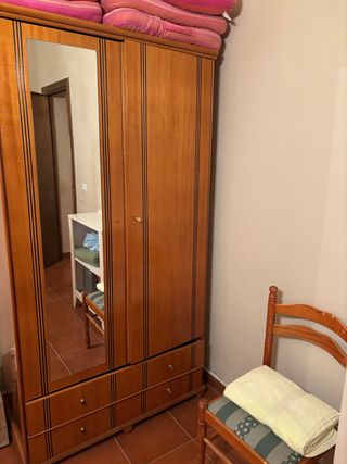 Armario ropero con espejo y cajonera – 110 € (negociables) Armario de 3 puertas (una con espejo) y 4 cajones en la parte inferior. • Interior con espacio para colgar y baldas. • En buen estado, práctico y resistente. Ideal para dormitorio, habitación juvenil o piso de alquiler. 📍 Recogida en mano. 💶 Precio: 110 € (negociables).