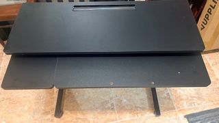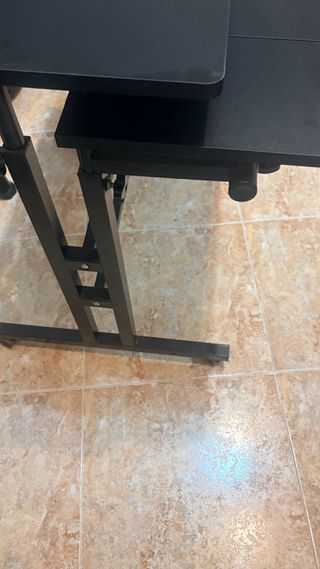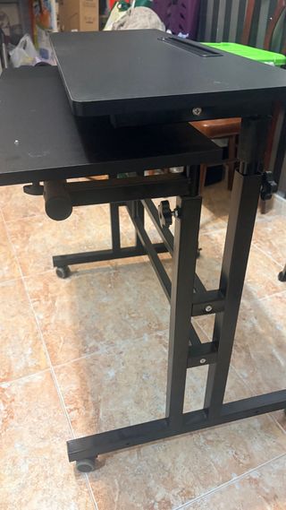 Mesa de escritorio versátil, ideal para tu espacio de trabajo o estudio. Su diseño moderno se adapta a cualquier ambiente. - Superficie amplia para colocar tu equipo. - Bandeja superior elevada. - Patas metálicas estables. consta de 2 baldas cada una de 30cm de ancho y es elevable desde 75cm a 140cm aproximadamente