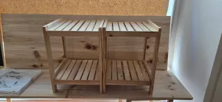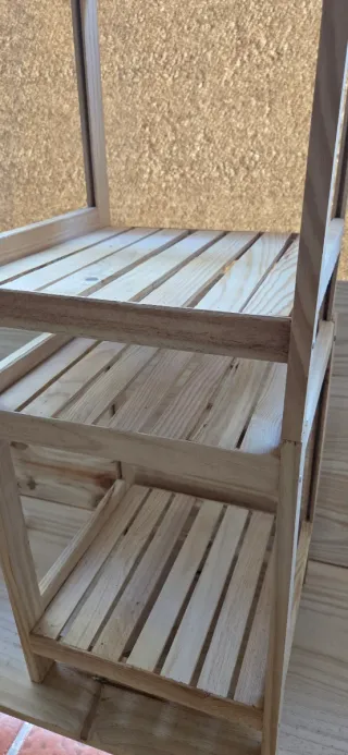 Estantería de madera de pino con dos niveles. - Diseño abierto y ligero. - Ideal para organizar objetos. - Construcción robusta. - Módulos independientes o apilables Cada estantería independiente precio por pieza 15€