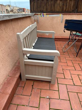 Banco de exterior con espacio de almacenamiento integrado. Ideal para terrazas o jardines. TOTALMENTE NUEVA TIENE 1 MES - Diseño de listones en el respaldo y la base. - Tapa del asiento abatible para acceder al interior.