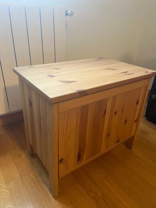 Banco de madera con almacenaje de IKEA. Está en muy buen estado, listo para usar. Medidas: 47 alto x 35 ancho x 55 largo cm Se puede enviar o recoger en Tres Cantos.