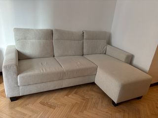Sofá chaise longue beige tela
