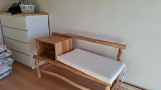 Banco madera entrada hall o pie cama. Perchero
