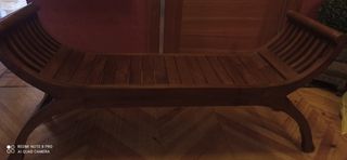 Banco de teka, usado para piezero de cama. ideal para entradas o un rincón bonito a decorar. tiene refuerzos en la parte de abajo para aguantar el peso, foto 3.
