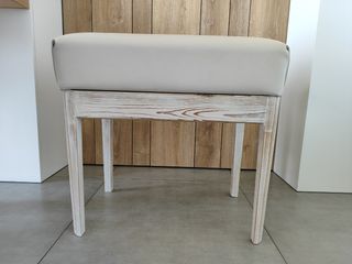 Banqueta de piano con asiento tapizado. - Patas de madera blanca. - Asiento de tela beige. Piano stool white wood and beige