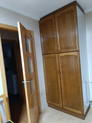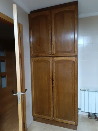 Armario despensa - Medidas: 1 metro de ancho, 60 cm de fondo y 2,40 metros de alto. - Diseño de cuatro puertas. - Acabado en madera natural.