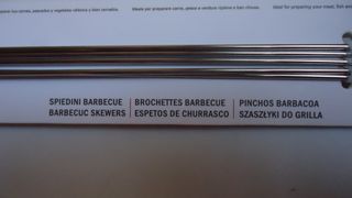 Es un conjunto de pinchos para barbacoa cantidad 5, ideal para preparar carnes, pescados, vegetales, miden 30cm de largo y duraderos, de acero inoxidable lavable tanto a mano como en lavavajillas. Nunca usados siempre guardado. Según fotos.