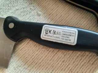 Conjunto de siete cuchillos de cocina / barbacoa con mangos ergonómicos. De la marca K.B Internacional. Se venden por falta absoluta de uso. Se pueden ver la etiqueta en los mangos en la mayoría de los cuchillos. Todos 25 € - Cuchilla de acero inoxidable. - Mangos de plástico negro.