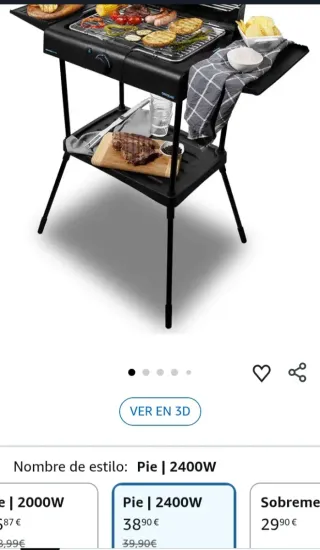 - De segunda mano, falta libro ! Cecotec Barbacoa eléctrica PerfectSteak 4250 Stand con 2400 W, Parrilla de Acero Inoxidable, Soportes con Gran Superficie, 3 Niveles de Altura y Panel Cortavientos, Acero Inoxidable, PerfectSteak Marca Cecotec Dimensiones del producto 13f. x 40an. x 56al. centímetros Función especial Altura ajustable, Placa extraíble Color Acero Inoxidable Tipo de combustible Eléctrico Usos recomendados para el producto Exteriores