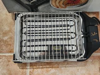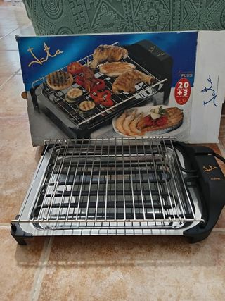 Barbacoa eléctrica con parrilla a dos alturas con bandeja de acero inoxidable..parrilla fácil de desmontar y limpiar...