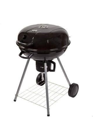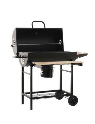 Barbacoa de carbón con un diseño clásico y funcional. Perfecta para disfrutar de comidas al aire libre. - Tapa con ventilación. - Bandeja inferior para accesorios. - Ruedas para facilitar el transporte.