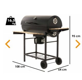 Termómetro roto. Todo lo demás está incluido en el conjunto. Dimensiones del producto: largo x ancho x alto: 58 x 47 x 100 centímetros FÁCIL TRANSPORTE: dispone de dos ruedas para poder moverla a cualquier lugar sin esfuerzo TERMÓMETRO INCORPORADO: que regula la temperatura interior y te ayuda a conseguir el punto perfecto de los alimentos RESISTENTE: está fabricada con acero inoxidable y con acabado esmaltado de alta calidad para que perdure a lo largo del tiempo REJILLA REGULABLE: que permite controlar el suministro de aire para una cocción óptima SABOR AUTÉNTICO: la preparación de alimentos en una barbacoa de carbón consigu