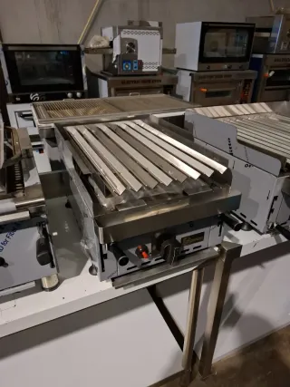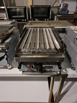 PRECIO NEGOCIABLE. parrilla de piedra volcánica industrial de sobremesa. Modelo compacto de alto rendimiento, ideal para cocinas profesionales con poco espacio que no quieren renunciar a la calidad de brasa. Características destacadas: Sistema de Elevación: Parrilla regulable en altura mediante palancas frontales. Permite controlar la intensidad del calor sobre el producto de forma mecánica (estilo parrilla vasca). Parrilla en V: Rejilla acanalada en acero inoxidable que canaliza la grasa hacia el depósito delantero, evitando humo excesivo y llamaradas. PRECIO NEGOCIABLE