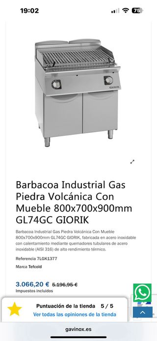 1500Euros Barbacoa Industrial Gas Piedra Volcánica Con Mueble 800x700x900mm GL74GC GIORIK