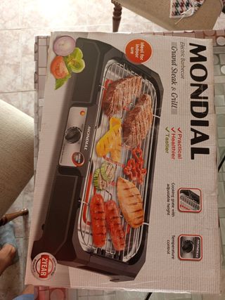 Barbacoa eléctrica Mondial Grand Steak & Grill, NUEVA SIN USAR. - Ideal para uso en interiores. - Parrilla con altura ajustable. - Control de temperatura.