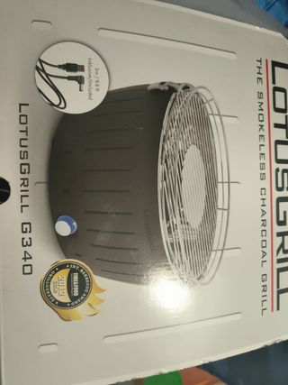 Lotusgrill BBQ carbon vegetal sin humo con conexión USB, gris antracita con carbon y liquido etc. solo 3 vezes usado y en perfectas condiciones. Referencia a Amazon 199€ en la foto.