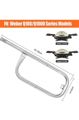 Quemador de repuesto para barbacoa de gas. GFTIME 43,82cm Quemador Barbacoa de Gas Piezas de Repuesto Parrilla para Weber Q100 Series Q100 Q120 Q1000 Q1200 Baby Q Acero inoxidable Bbq Quemadores para Weber 50060001 51010001 51060001 LP, 69957 - Longitud: 43,82 cm. - Fabricado en metal. - Diseño plateado.