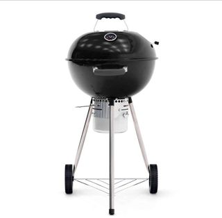 Compacta barbacoa de mesa, ideal para espacios pequeños o para llevar de camping. Su diseño esférico y sus patas la hacen práctica y fácil de usar. - Asa superior para transporte. - Rejilla de ventilación ajustable en la tapa y base.