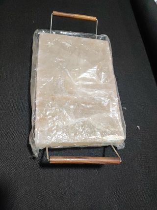 Esta completamente NUEVA se incluye el soporte Sirve para carnes,pescados, mariscos, etc. Uso en el horno, en una parrilla o en una barbacoa, es maravillosa.Los alimentos cogen la sal que necesitan al guisarlos en ella. Venta en persona