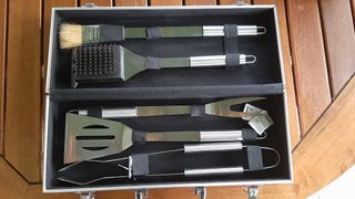 Maletín de 5 utensilios en acero inoxidable para Barbacoa. sin estrenar, incluido en el embalaje original.